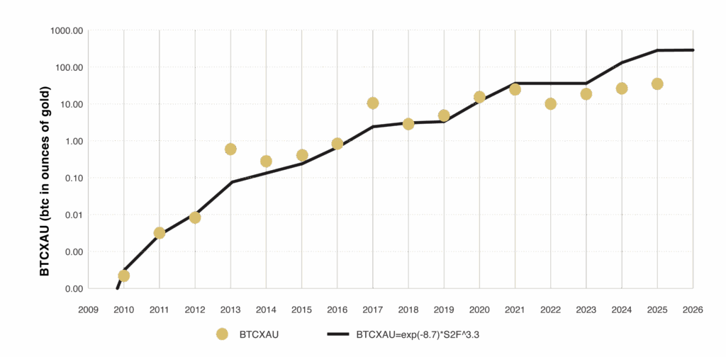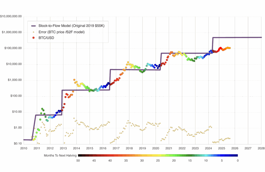 Source: PlanB@100trillionUSD-PlanBTC.com. Actual value up until 10/1/25. Model expectations for 2025-2026.