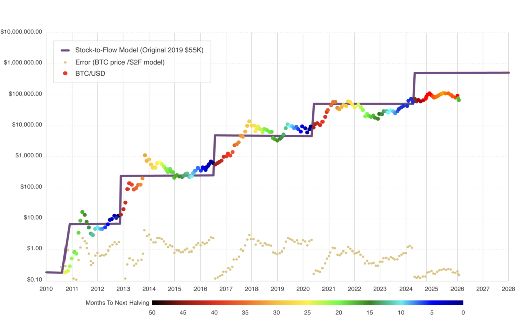 Source: PlanB@100trillionUSD-PlanBTC.com. Actual value up until 2/15/26. Model expectations for 2025-2026.
