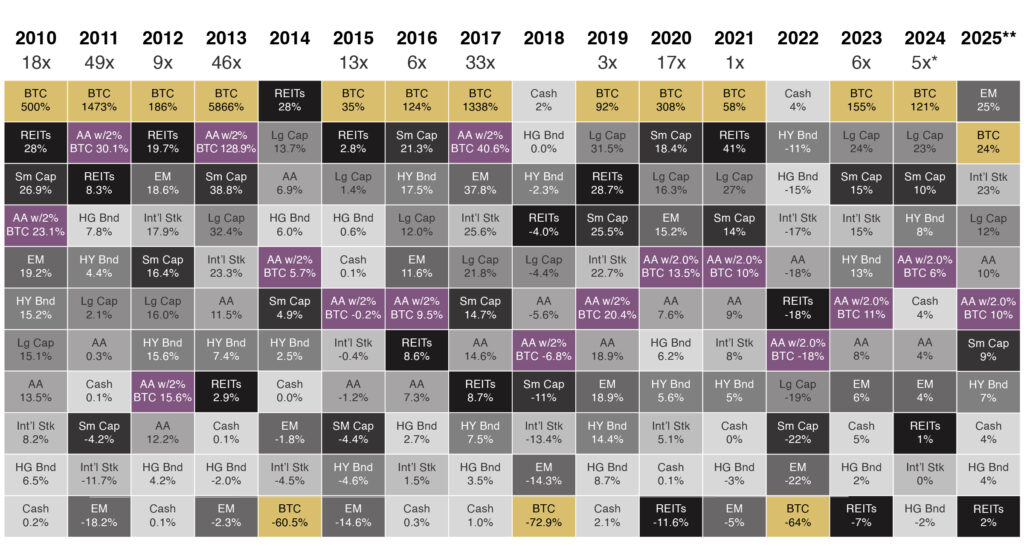 Source: novelinvestor.com, Off the Chain Capital. Data as of 9/11/25. *How many times greater Bitcoin has performed than the second best performing asset class. **Performance of assets since the end of 2024.