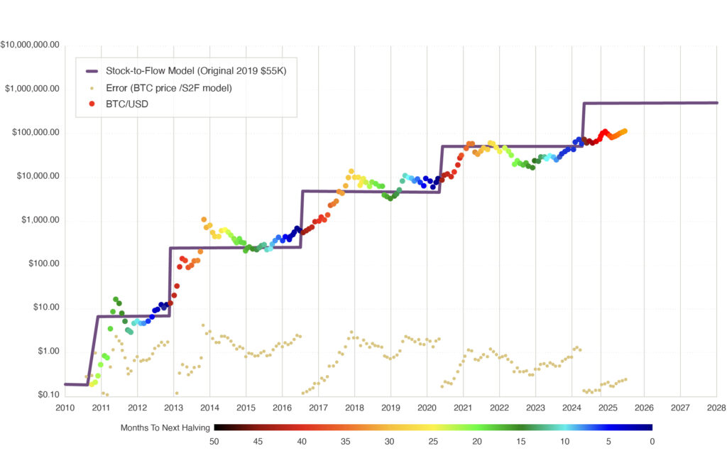 Source: PlanB@100trillionUSD-PlanBTC.com. Actual value up until 8/1/25. Model expectations for 2025-2026.
